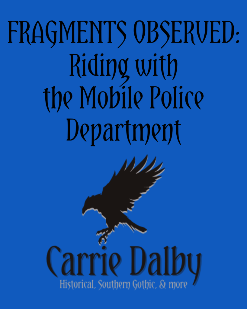 Carrie’s new blog series “Fragments Observed: Riding with the Mobile Police Department” posts the third week each month.