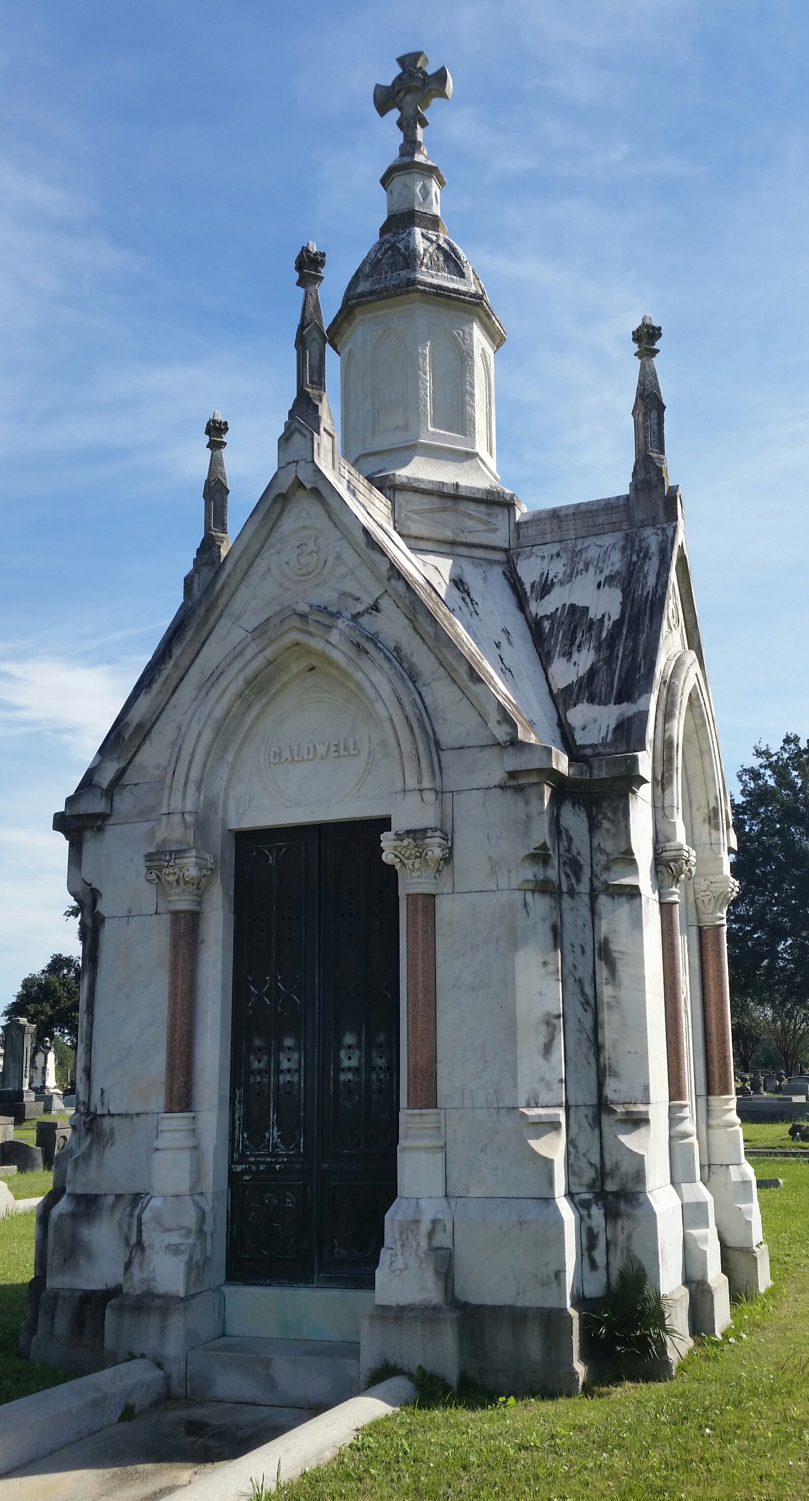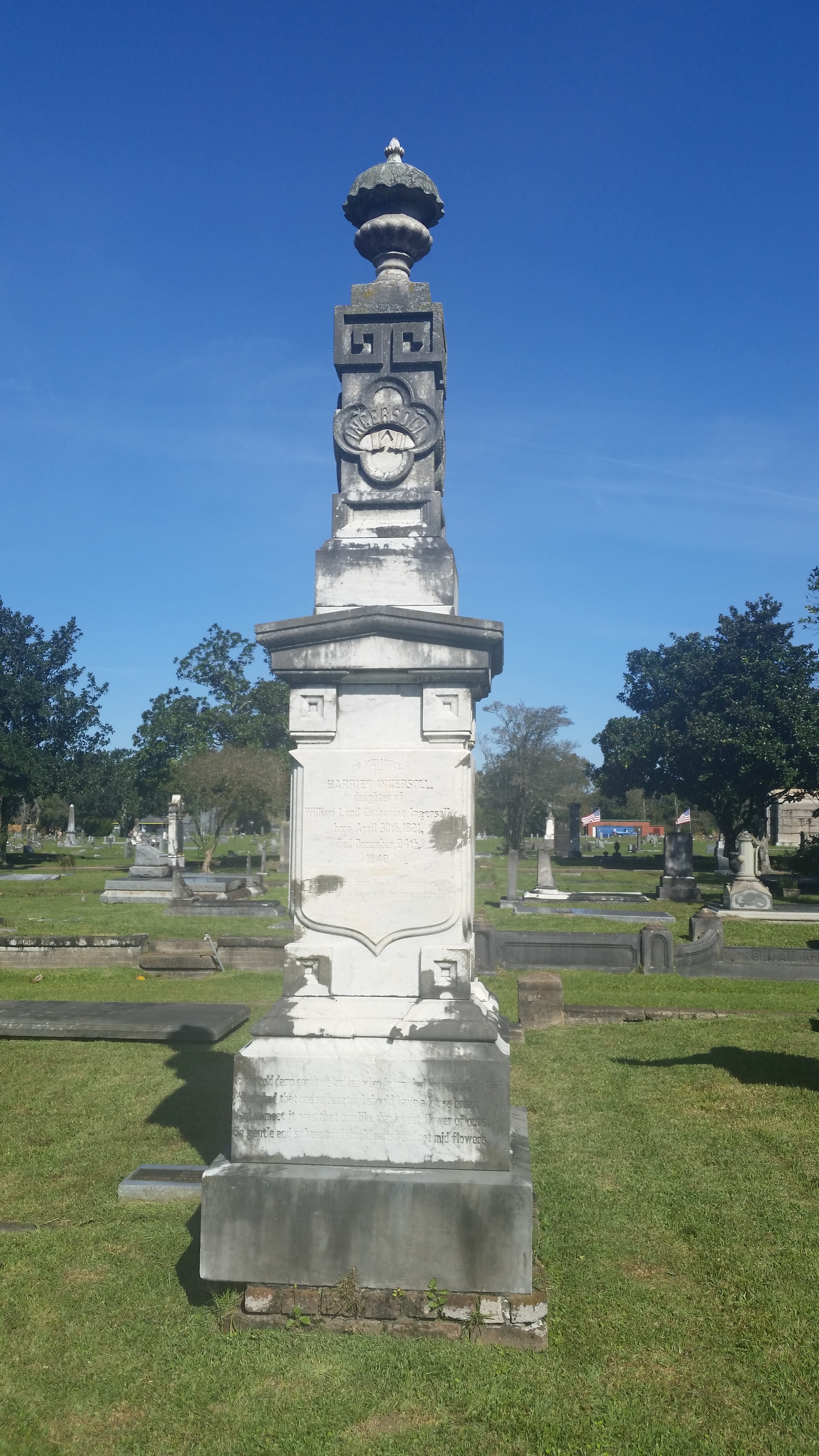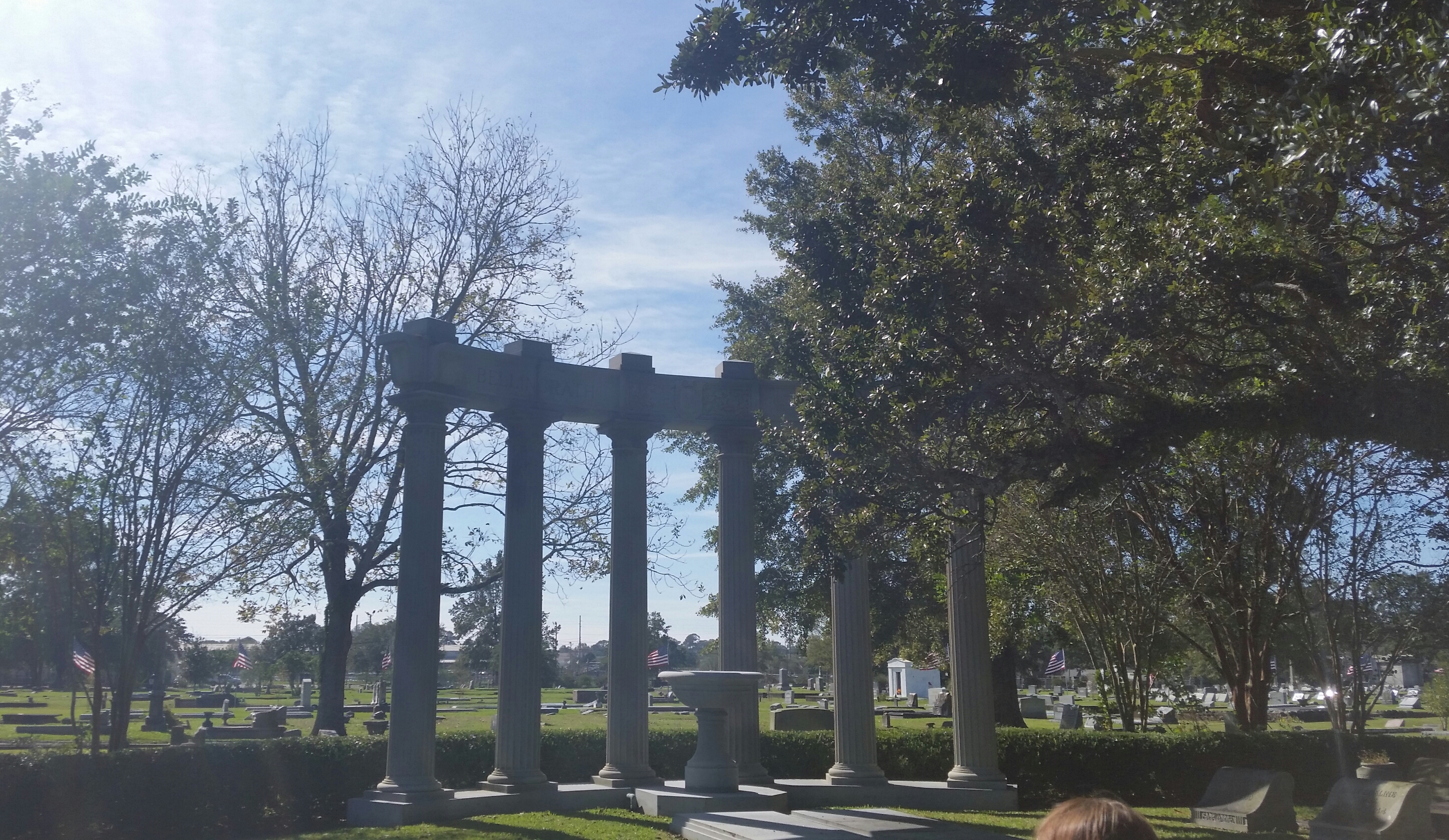 On Saturday, I participated in a walking tour of historic Magnolia Cemetery here in Mobile, Alabama. I got to geek out over local history in the fourth oldest (and the largest) municipal cemetery, established in 1836. People of all faiths and walks of life rest here, including plenty of noteworthy historical figures. And as it was Veteran’s Day Week, 105 casket flags from service members from thirty states flew over the Avenue of Heroes—a lovely sight on the blustery autumn morning. Here’s a sampling of photographs.