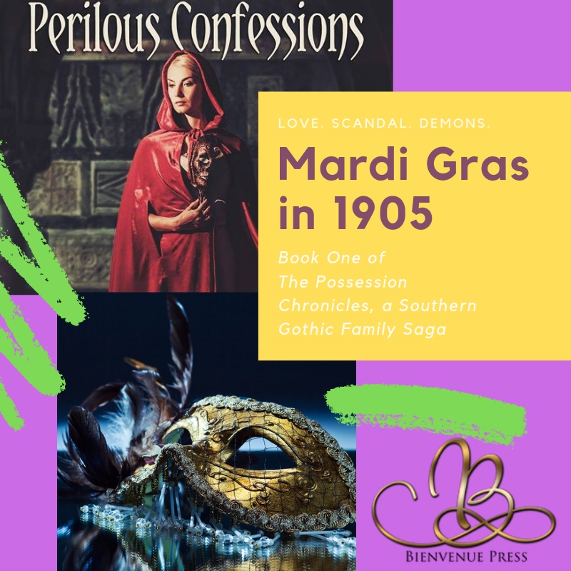 Mardi Gras is prominent in Perilous Confessions, the first book in the series, and there isn’t much in life more decadent than those masquerades. My tagline for the book is “Their love brought scandal and demons.” You can’t get much more doomed than demons. Add in the backdrop of carnival season with the juxtapose of life and death symbolized in much of Mobile, Alabama’s Mardi Gras history looming in the background–not to mention Catholic guilt–it creates a greater sense of urgency to the characters’ choices. A “play with Folly all you like, but come Lent it needs to stop” attitude that might be easier said than done when you dive into addiction and other psychological issues.