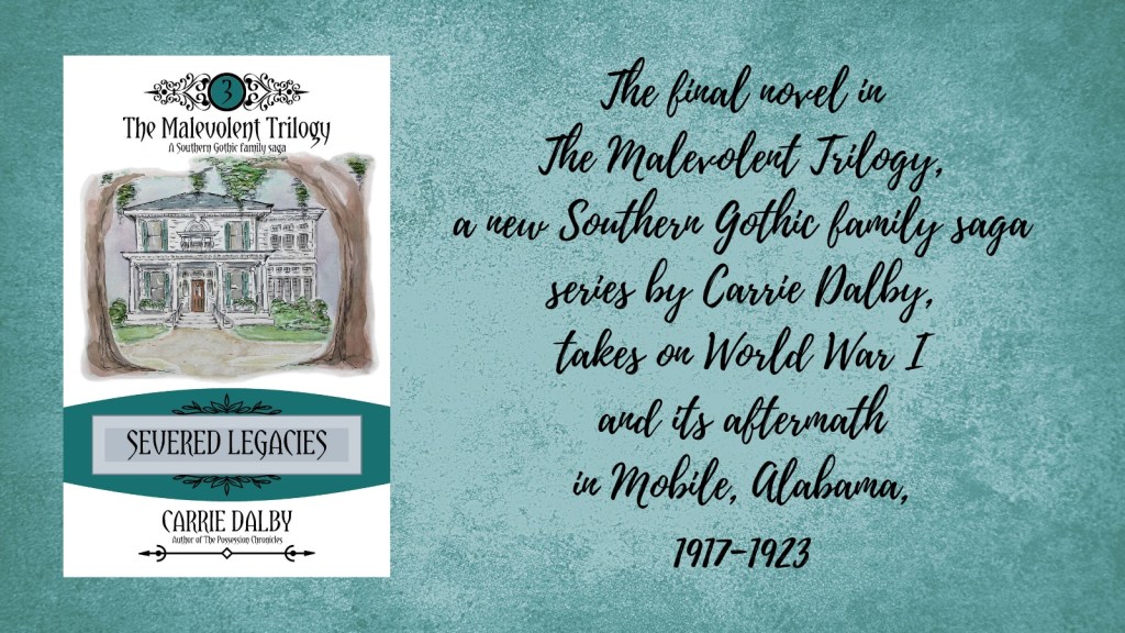 And the third novel, Severed Legacies, features the home of Dr. John Woodslow’s family. Both this one, known historically as the Alfred Staples House, and 19 Columns were designed by architect George B. Rogers. I love taking historic houses and giving them new life with fictional characters. (The Mellings’ Government Street mansion in The Possession Chronicles is another Rogers built home.)