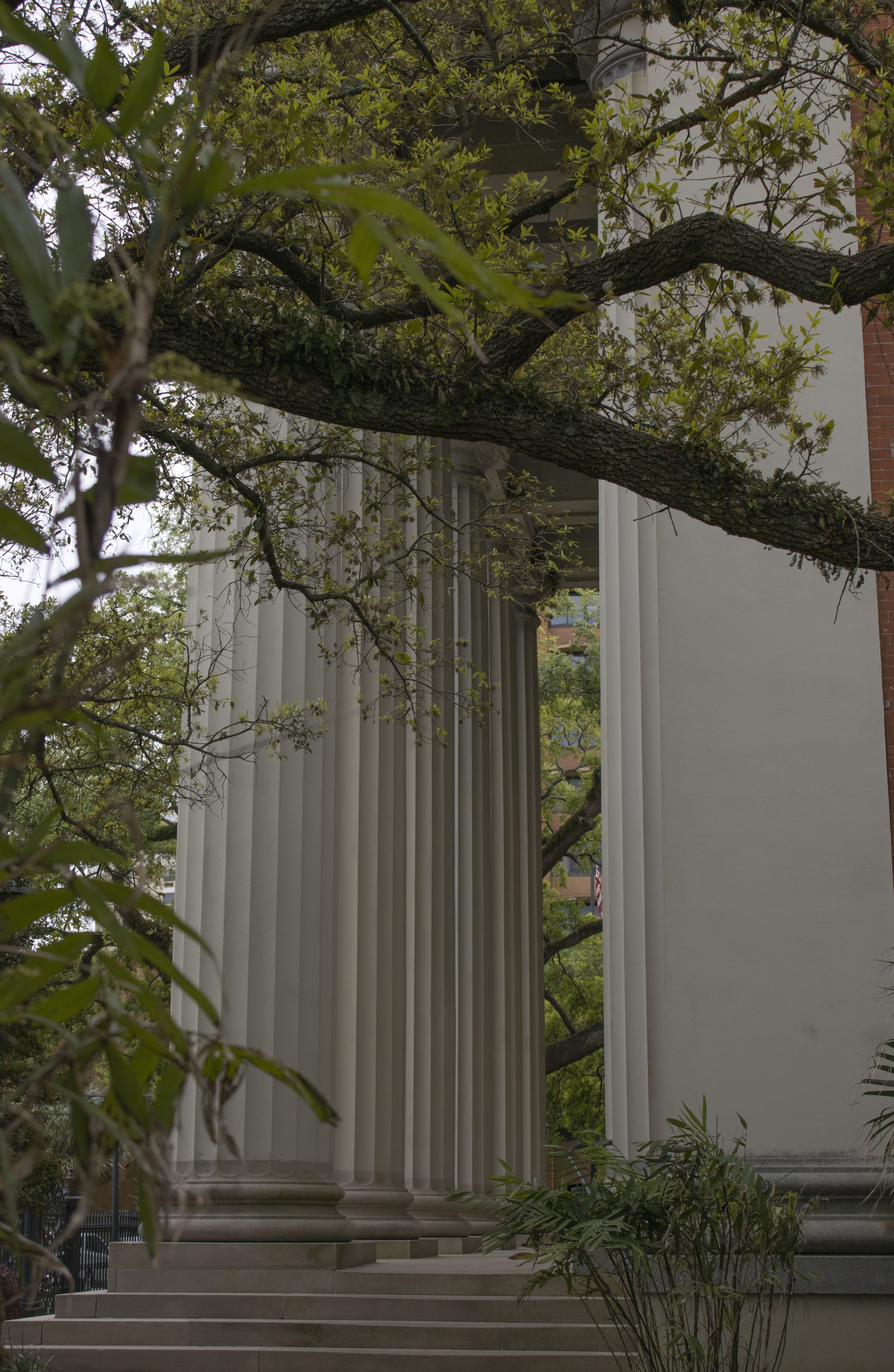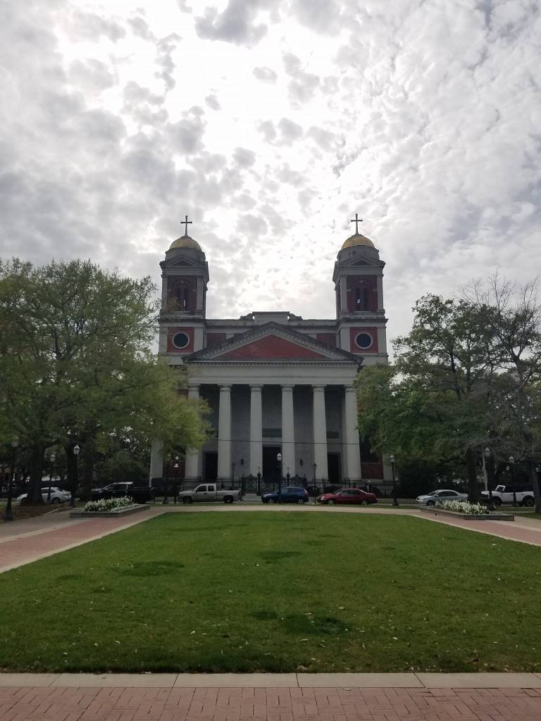 Yesterday was crisp as well. I took a walkabout with one of my teens, taking photos of Mobile places that relate to my books. Here are a few of The Cathedral-Basilica of the Immaculate Conception in downtown. Otherwise known as the cathedral that’s always mentioned in my stories. The first one is mine (camera phone), the other two taken by my son with his new fancy camera.