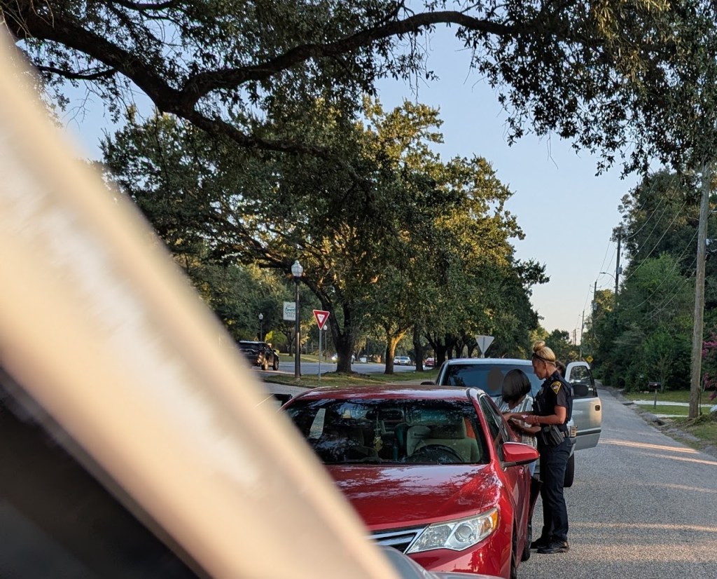 I was placed in the capable hands of Officer Wells, once more. The morning started with over an hour of patrol around her beat until school and commuter flow picked up. Then traffic stops began, which carried over off and on throughout the day, mostly warnings to drivers about following too closely, especially when combined with speeding or abrupt lane changes. I heard the first of two accidents we were dispatched to while she had another driver pulled over. The squeal of brakes, followed by the impact of crunching plastic and metal made me cringe. Giving more distance between vehicles can prevent a lot of accidents, which is one of the many traffic related habits Officer Wells tries to educate drivers about when she pulls people over. Increased awareness will hopefully prevent the stress of unnecessary accidents in the future for the dozens of people involved in them daily around Mobile, from minor fender benders to those with casualties. Fortunately everyone was able to walk away from all the traffic incidents we were on that day, and three out of four vehicles drove home.