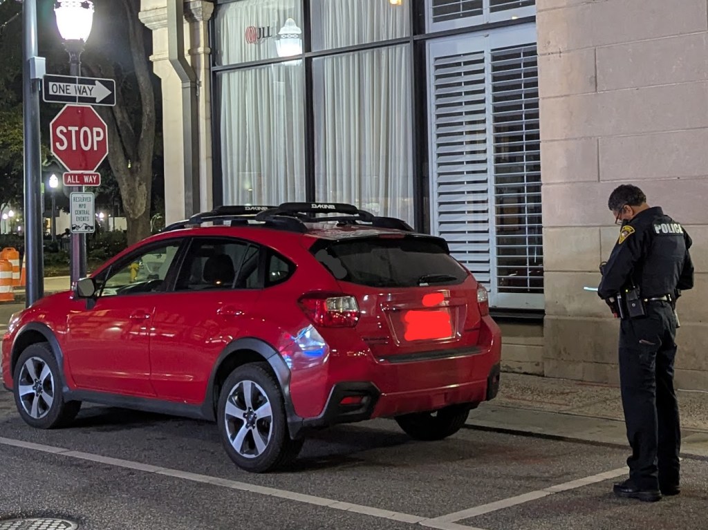 The shift turned out to be one of my only patrols that didn’t have dispatches to traffic accidents, but there were plenty of parking violations throughout the shift. When downtown, it’s especially important to pay attention to the street parking signs. Just because the meters are free on the weekends, doesn’t mean you can disregard the other postings such as parking spots clearly labeled for MPD only and no parking after 11pm on certain blocks of Dauphin Street.