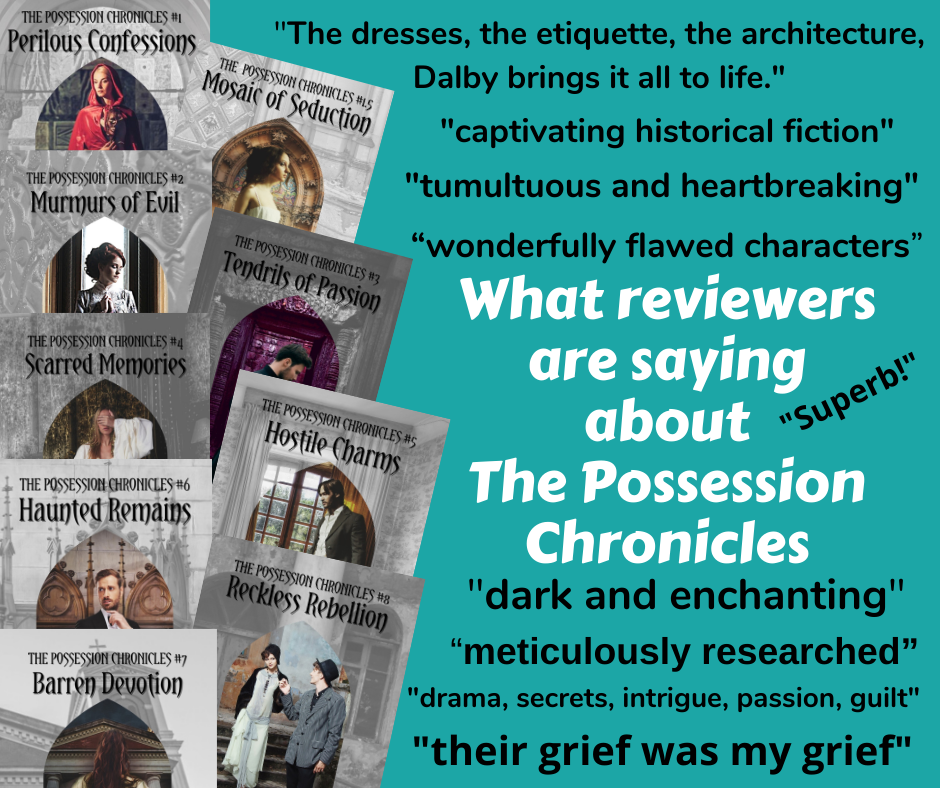 * 8 Reckless Rebellion (1919-1929 novel) NOT perfectly chronological, but keeping the final two Possession Chronicles books together will prevent major PC spoilers that are only minor/background happenings in the last Malevolent Trilogy book and the final two Washington Square Secrets titles because of time overlaps.