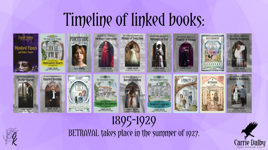 For those looking for more, the series links to the stand-alone teen novel, Fortitude, as well as The Malevolent Trilogy and Washington Square Secrets. Scroll to the bottom of the page to see a chronological reading list for all the historical Southern Gothics.